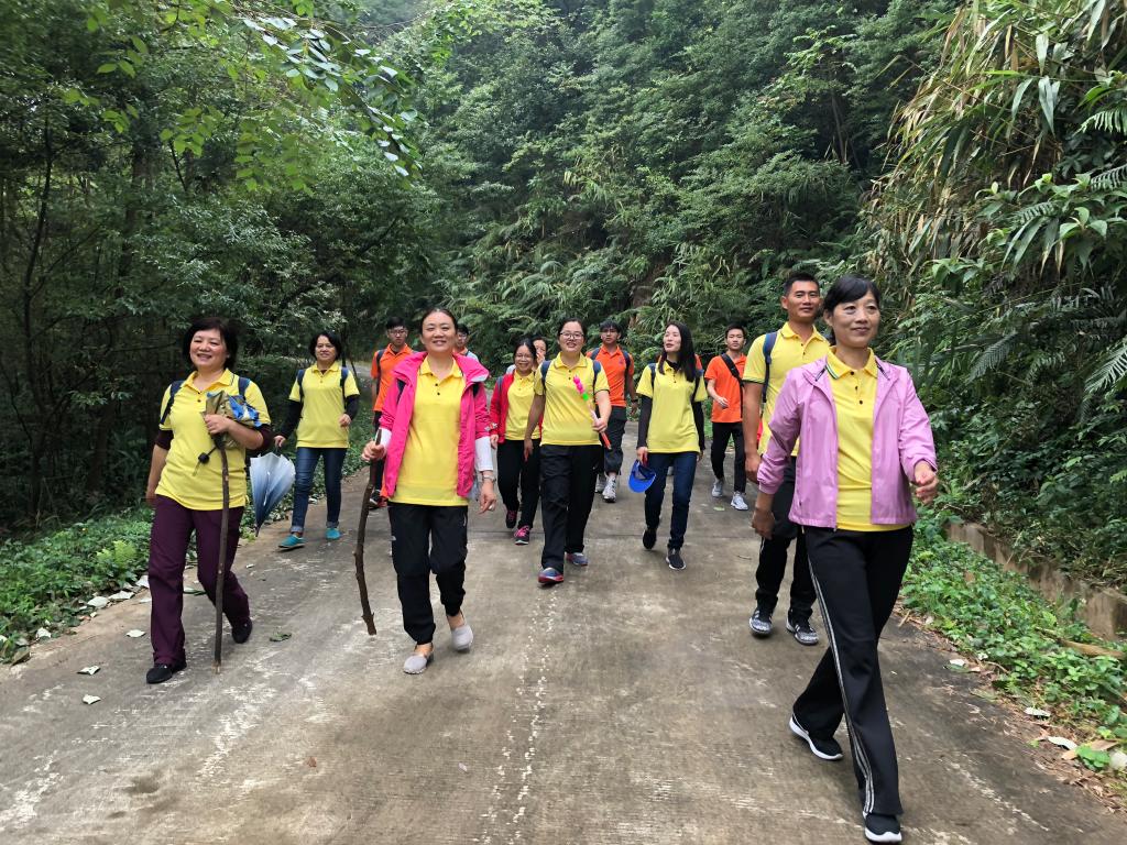 参加活动的教职工从学校出发,途径穗丰村,从帽峰山脚开始沿着大路上山,一路上大家互相交流感情、互相扶持、互相打气,看着美景,呼吸新鲜空气,有的步伐矫健、步调轻盈,有的走走停停只为记录沿途美景。经过2个多小时的徒步,全体活动人员都登山了534.9米高的峰顶。
