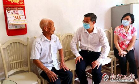 | 吕业升看望慰问老党员吴昭润(左一) |