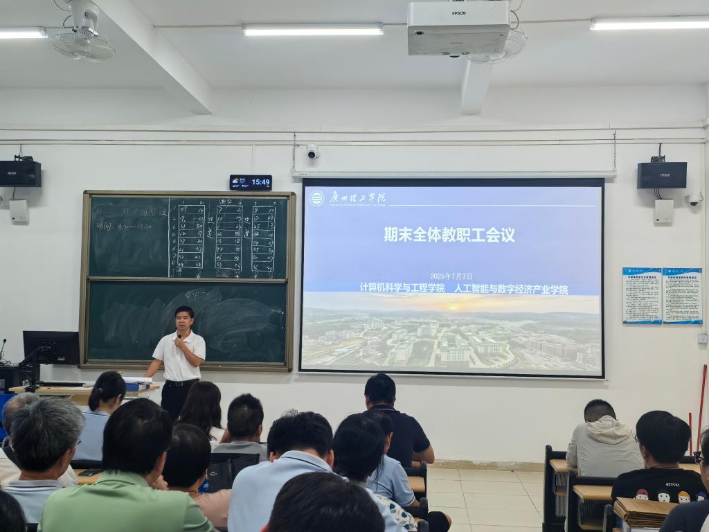 2025年7月7日,为切实做好本科教学合格评估准备工作,计算机科学与工程学院、人工智能与数字经济产业学院于6教101课室召开2025年春季学期期末教学评估工作专题会议。会议围绕试卷命题、教学资料归档、教学大纲整改等10项核心工作进行全面部署,学院领导班子、各系部主任、课程组组长及全体教师参加了此次会议。