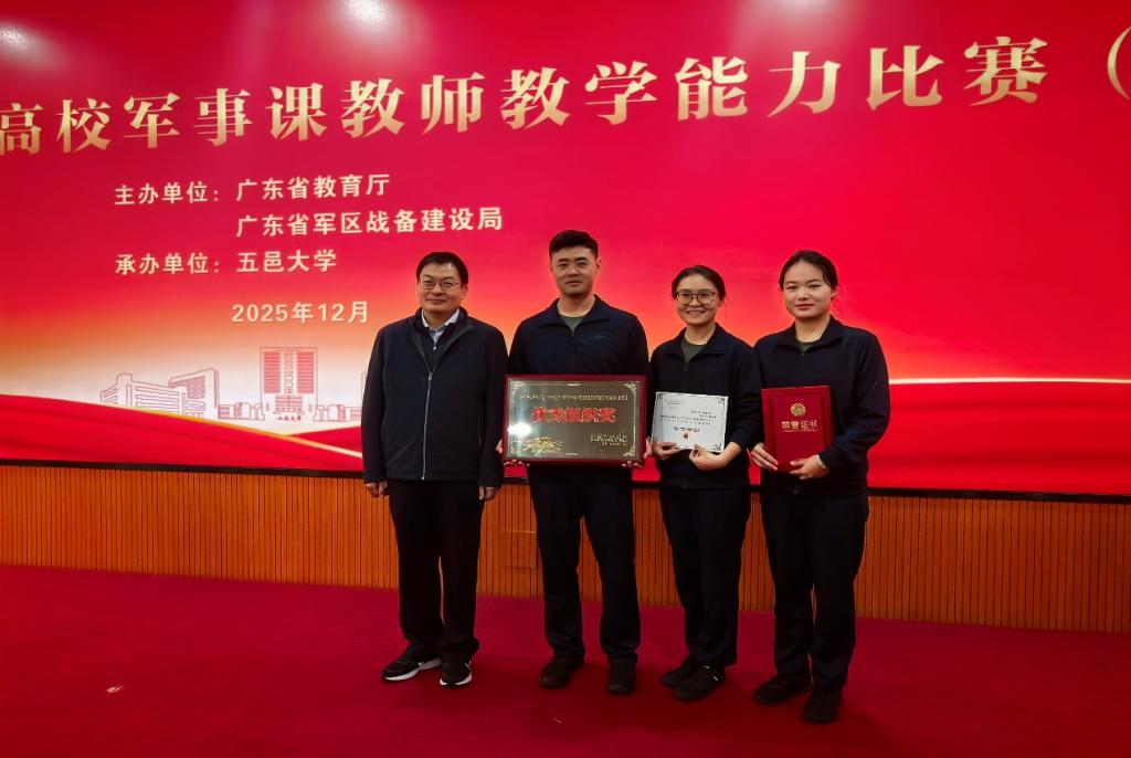 2月3日至4日,广东省举办2025年全省高校军事课教师教学能力比赛,此次比赛历经初赛、提升班培训与决赛等多个环节,马克思主义学院教师段昭荣获二等奖、陈芝霖荣获三等奖、陶蓉荣获优秀奖。充分展现了马克思主义学院教师优秀的教学水平与团队协作能力,学校荣获由广东省教育厅与广东省军区战备建设局颁发的“优秀组织奖”。