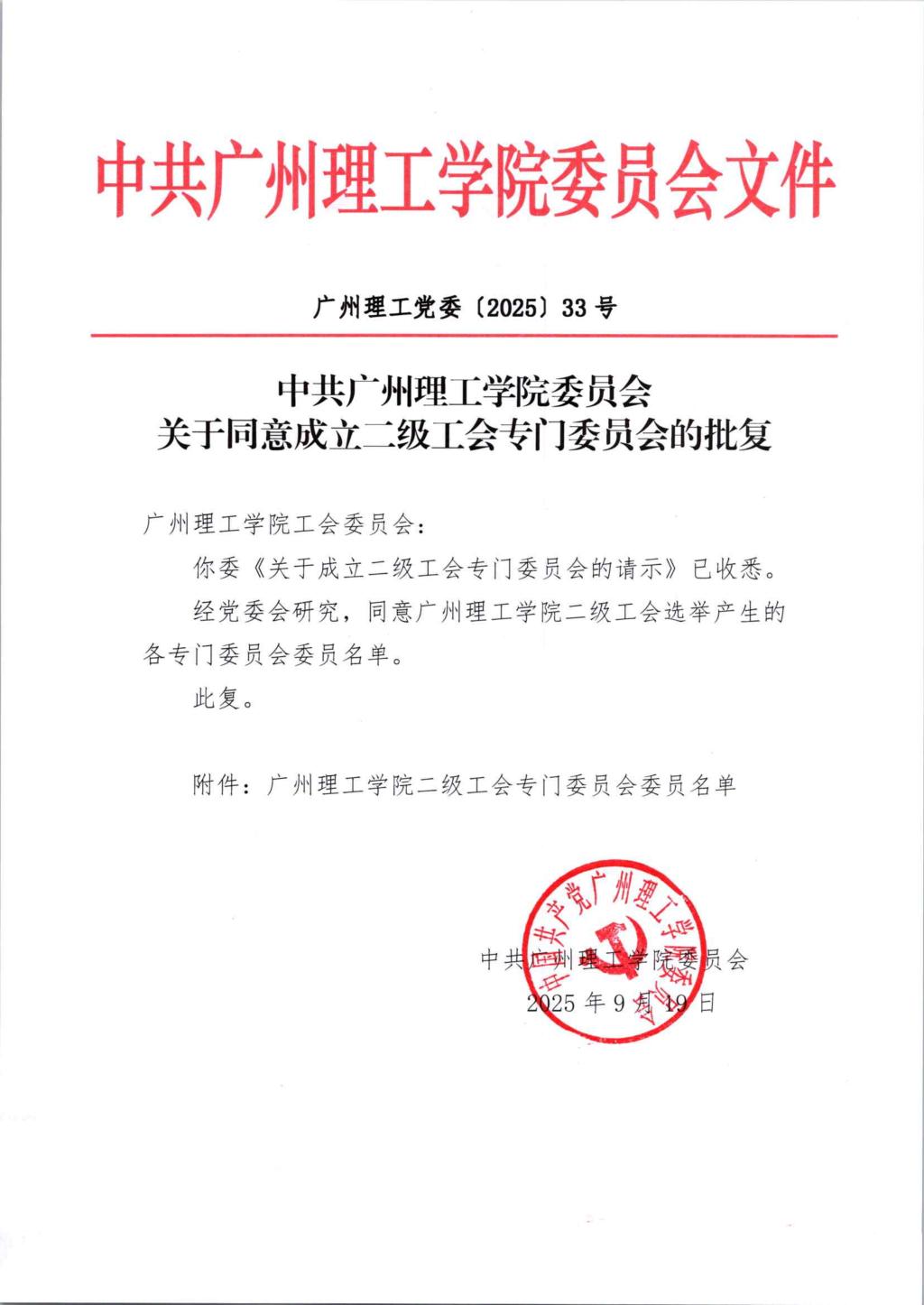 中共suncitygroup太阳集团委员会关于同意成立二级工会专门委员会的批复