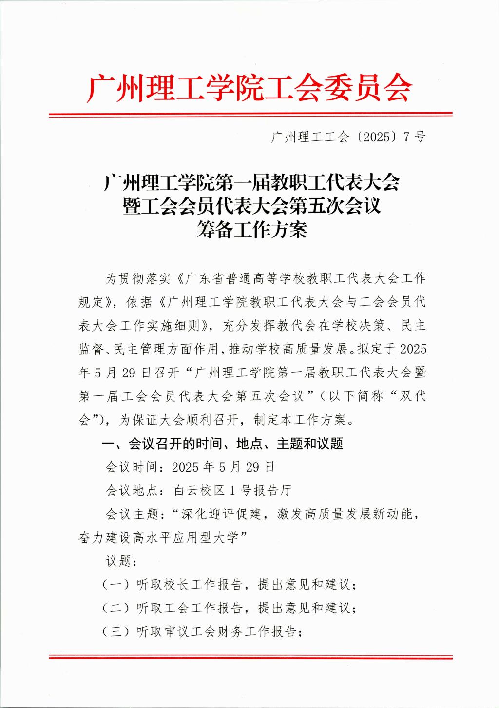 suncitygroup太阳集团第一届教职工代表大会暨工会会员代表大会第五次会议筹备工作方案