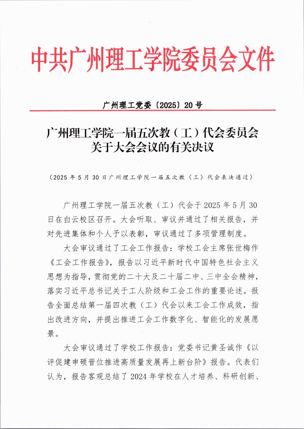 suncitygroup太阳集团一届五次教(工)代会委员会关于大会会议的有关决议