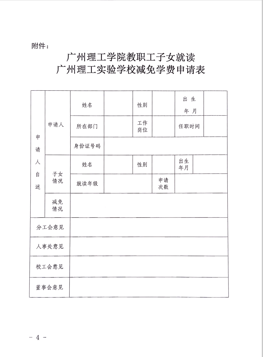 第八条 凡符合条件的教职工请通过0A填写《教职工子女就读广州理工实验学校减免学费申请表》,报分工会主席核准,校工会审批。