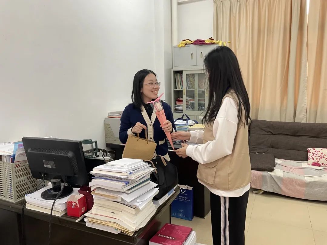 在这个特殊的日子来临之际,学校高度重视,校工会为女教师准备了鲜花和礼物,向她们传递爱与温暖。学院领导召集女教工开展了座谈交流,并对女教职工们致以节日的问候。同时,学生们带着礼物与鲜花前往九栋教师办公室,把礼物与鲜花逐一送给老师。温馨的祝福和贴心的礼物,给女教师们带来了节日的惊喜和欢乐,纷纷绽放出她们美丽的笑容。
