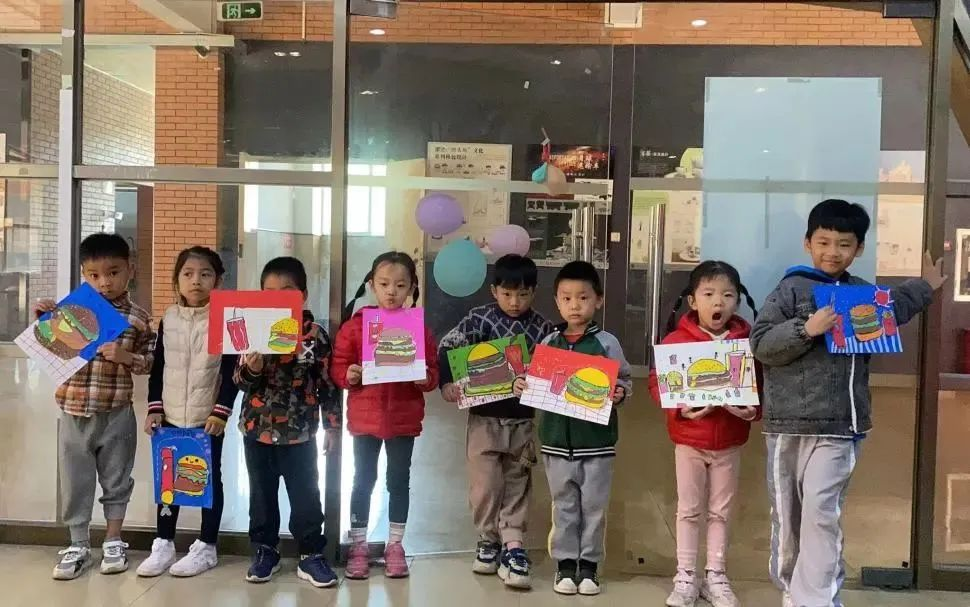 本周绘画小班课程主题是“美味汉堡包”。老师向同学们展示汉堡的图片,通过观察了解汉堡是由面包片、蔬菜、肉饼、芝士等食材组成,同时注意食物之间的大小变化和遮挡关系。随后让同学们以写生方式进行创作,通过自由搭配不同的食材,画出独特的汉堡造型,培养小朋友们的造型与想象能力。
