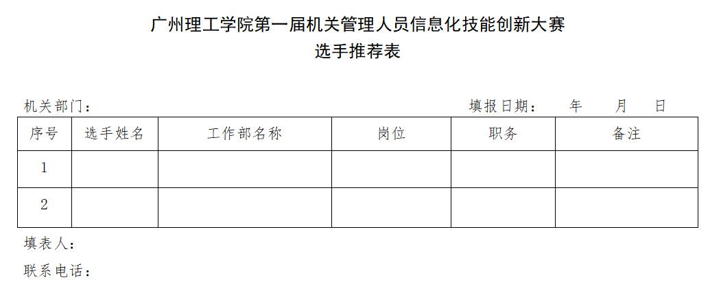 1.suncitygroup太阳集团第一届机关管理人员信息化技能创新大赛选手推荐表