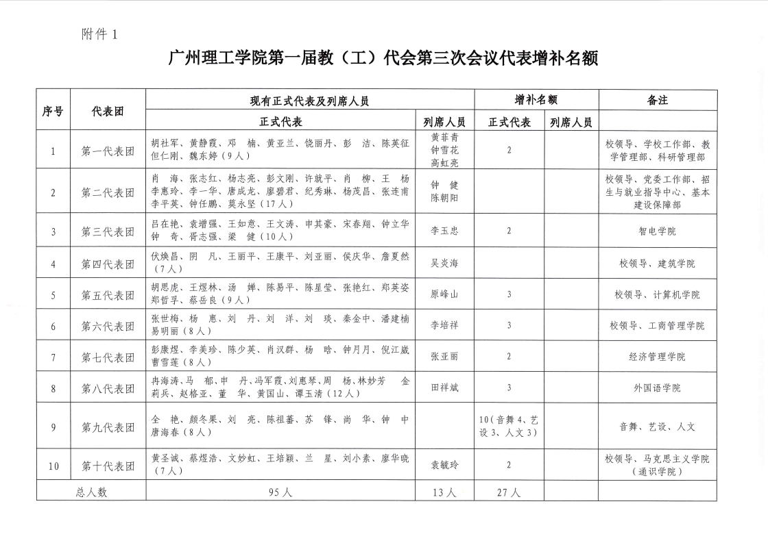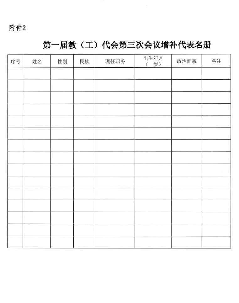 附件:1.第一届教(工)代会第三次会议增补代表名额